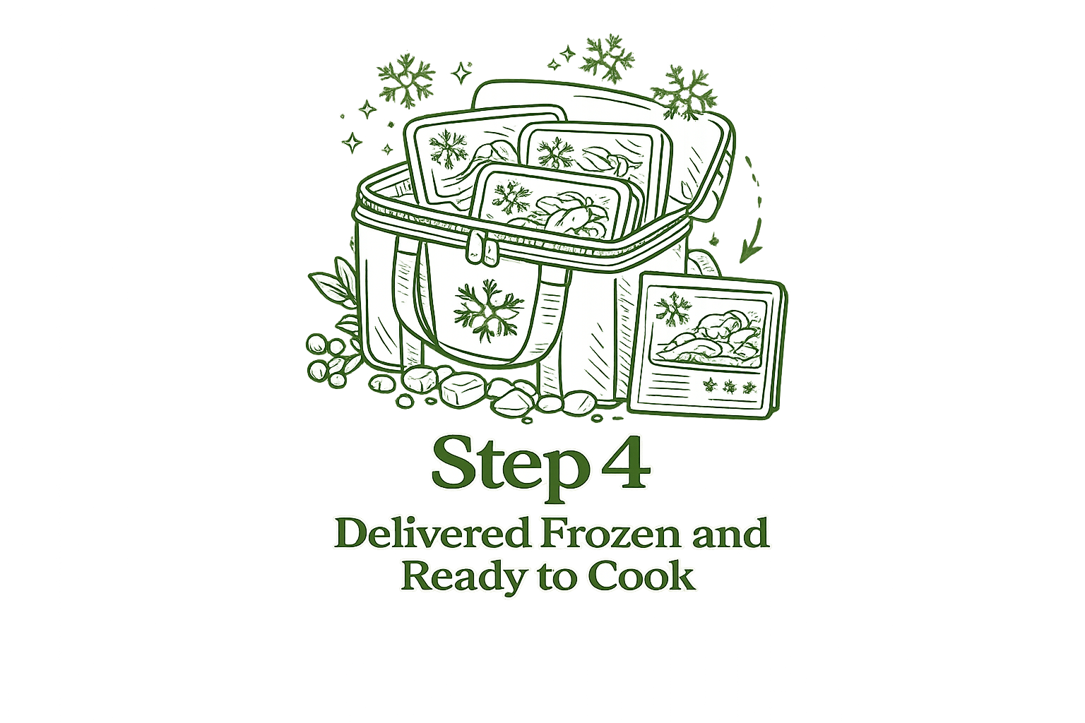 Orders are packaged in sturdy cardboard boxes and insulated using Woolcool, a sustainable material made from recycled sheep’s wool. Woolcool provides excellent temperature control to keep meals safely frozen during transit while reducing the need for single-use plastic packaging. The wool insulation can also be reused in nurseries for craft activities or in outdoor spaces to help protect plants from frost.